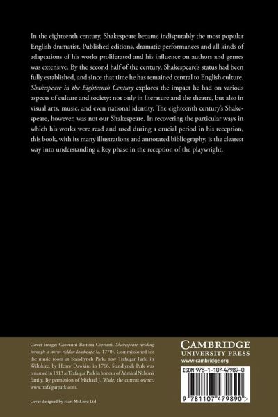 In the eighteenth century, Shakespeare became indisputably the most popular English dramatist. Published editions, dramatic performances and all kinds of adaptations of his works proliferated and his influence on authors and genres was extensive. By the second half of the century Shakespeare's status had been fully established, and since that time he has remained central to English culture. Shakespeare in the Eighteenth Century explores the impact he had on various aspects of culture and society: not only in literature and the theatre, but also in visual arts, music and even national identity. The eighteenth century's Shakespeare, however, was not our Shakespeare. In recovering the particular ways in which his works were read and used during this crucial period in his reception, this book, with its many illustrations and annotated bibliography, is the clearest way into understanding this key phase in the reception of the playwright.