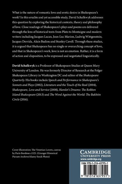 This book delivers a comprehensive investigation into the historical context of the concept of love that Shakespeare inherited. Professor Schalkwyk explores the ways in which Shakespeare's treatment of love may be illuminated by the philosophy and theory of writers including Plato, Ludwig Wittgenstein and Jacques Derrida.
