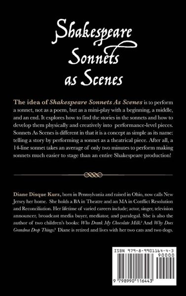 Shakespeare Sonnets as Scenes is a comprehensive guide that empowers beginners and experiences individuals alike to creatively transform sonnets into captivating performances. The idea of Shakespeare Sonnets as Scenes is to perform a sonnet, not as a poem, but as a mini-play with a beginning, a middle, and an end.