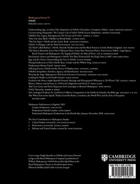 Shakespeare Survey is a yearbook of Shakespeare studies and production. The theme for Volume 75 is 'Othello'. The complete set of Survey volumes is also available online at https://www.cambridge.org/core/what-we-publish/collections/shakespeare-survey.