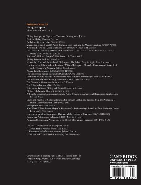 The theme for Shakespeare Survey 59 is 'Editing Shakespeare'.
