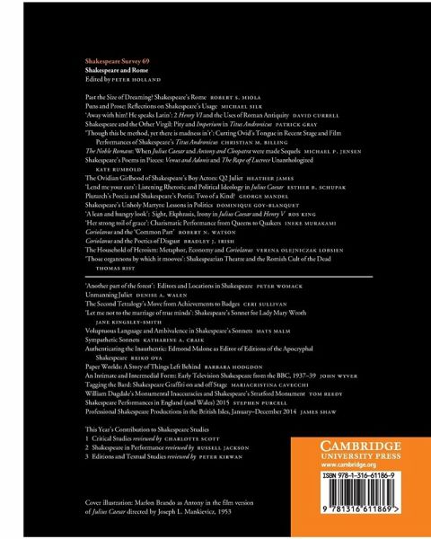 The theme for Shakespeare Survey 69 is 'Shakespeare and Rome'.