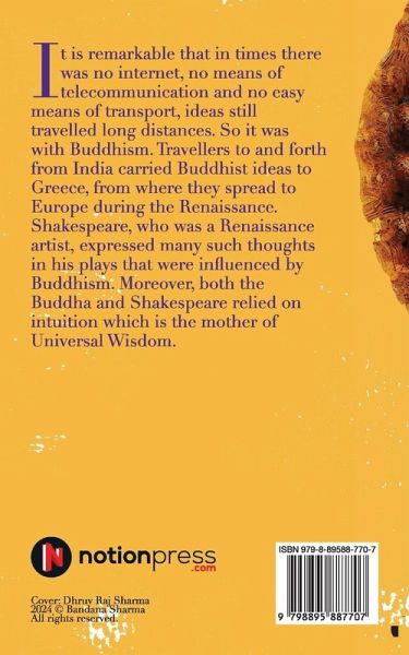 Shakespeare and the Buddha may seem to have little in common between them but studying the two together can help coming to an entirely different conclusion. The similarity in the ideas of the two is amazing. The Buddha has dwelt at length on suffering and its cause; also, how it affects man. Shakespeare has shown suffering in his great tragedies and other plays and traces its cause to a flaw in the tragic hero or erring character. The reasons for human suffering are similar in both of them. Similarly, compassion, love, anger, jealousy, friendship, tolerance, contentment, kindness to animals, empathy, charity, mercy, loyalty, intuition, good conduct, the flip side of wealth and power, and nothingness are phenomena that both valued immensely. This book puts together the ideas of Shakespeare and the Buddha in plays such as The Merchant of Venice, Measure for Measure, King Lear, As You Like It, and The Tempest. What emerges is that the thoughts of these two geniuses merge all the time and one sees that the two great minds think alike.