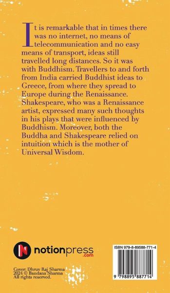 Shakespeare and the Buddha may seem to have little in common between them but studying the two together can help coming to an entirely different conclusion. The similarity in the ideas of the two is amazing. The Buddha has dwelt at length on suffering and its cause; also, how it affects man. Shakespeare has shown suffering in his great tragedies and other plays and traces its cause to a flaw in the tragic hero or erring character. The reasons for human suffering are similar in both of them. Similarly, compassion, love, anger, jealousy, friendship, tolerance, contentment, kindness to animals, empathy, charity, mercy, loyalty, intuition, good conduct, the flip side of wealth and power, and nothingness are phenomena that both valued immensely. This book puts together the ideas of Shakespeare and the Buddha in plays such as The Merchant of Venice, Measure for Measure, King Lear, As You Like It, and The Tempest. What emerges is that the thoughts of these two geniuses merge all the time and one sees that the two great minds think alike.