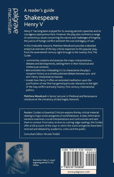 Acknowledgements.- Notes on the Texts.- Introduction.- Making the Text: Date, Sources, Textual History.- The Seventeenth and Eighteenth Century: Neoclassicism and Early Editions.- The Nineteenth-Century: Romantic and Victorian Interpretations.- The Early Twentieth-Century: What Makes a Good King?.- The Mid-Twentieth-Century: History, War and Epic.- The Mid to Late Twentieth Century: Ambivalence and Play.- The Later Twentieth Century and Beyond: Power, Subversion and Masculinity.- A Play for the New Millennium: Nationhood, Memory and Just War.- Conclusion.- Notes.- Select Bibliography.- Index.