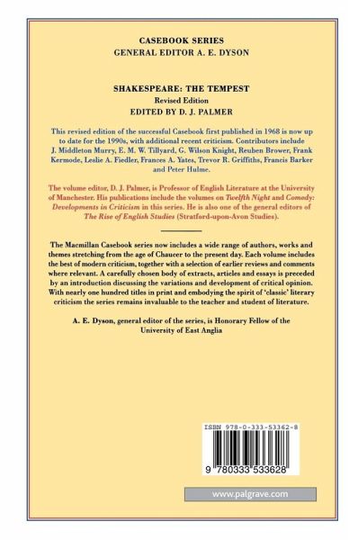 The revised edition of this particularly successful Casebook first published in 1968 is now up-to-date with recent criticism for the 1990s. Part 1 Adaptations and Extracts from Earlier Critics contains comment on the play spanning the years from Shakespeare's day. It includes Dryden and Davenount, Johnson, Coleridge, Hazlitt, James and Auden. Part 2 Recent Studies has been thoroughly revised and contains new work from Fielder, Yates, Griffiths and Barker and Hulme.