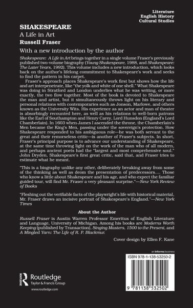 Shakespeare: A Life in Art brings together in a single volume Fraser's previously published two-volume biography (Young Shakespeare, 1988, and Shakespeare: The Later Years, 1992)