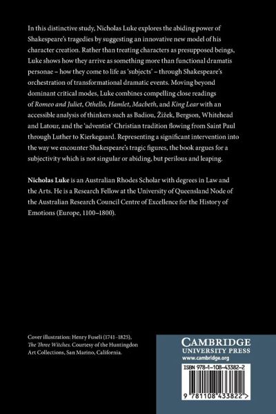 This book provides a novel account of how Shakespeare creates his great tragic characters. It examines Shakespeare's technique in orchestrating dramatic events alongside Christian notions of rebirth, Badiou's philosophy of event, and process philosophy. It appeals to those interested in Shakespeare, aesthetics, and subjectivity.