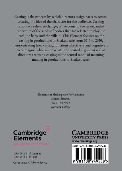 This Element focuses on the casting in productions of Shakespeare from 2017-2020 to demonstrate how directors are using casting as the central mode of meaning-making in productions of Shakespeare.