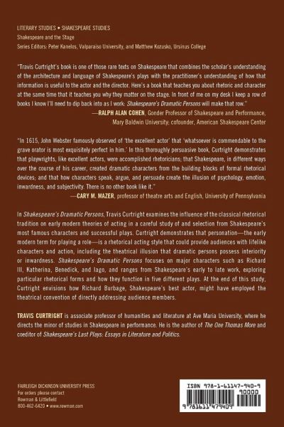 To refine a critical understanding of early modern acting styles, Shakespeare’s Dramatic Persons explores how the classical rhetorical tradition would inform an actor’s personation of character.