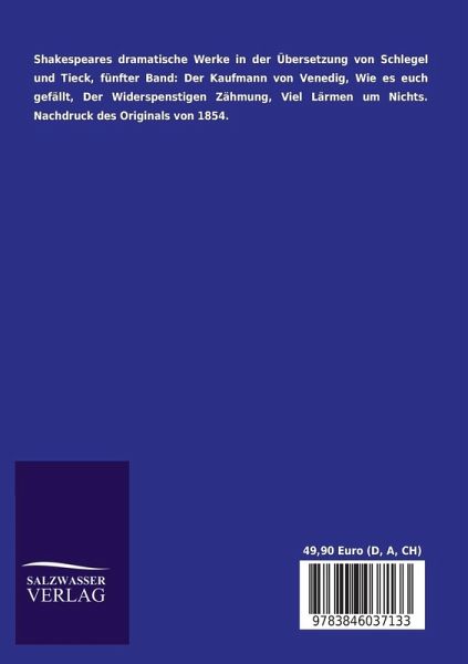 Shakespeares dramatische Werke in der Übersetzung von Schlegel und Tieck, fünfter Band: Der Kaufmann von Venedig, Wie es euch gefällt, Der Widerspenstigen Zähmung, Viel Lärmen um Nichts.