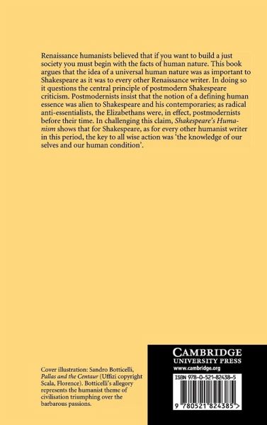 Shakespeares Humanism analyses a number of key Shakespeare plays, as well as works by Shakespeares contemporaries, to offer a methodology for interpreting this literature, both on the page and in the theatre. Renaissance humanists believed that if you want to build a just society you must begin with the facts of human nature. Headlam Wells argues that the idea of a universal human nature was as important to Shakespeare as it was to every other Renaissance writer, and therefore challenges the central, defining principle of postmodern Shakespeare criticism.