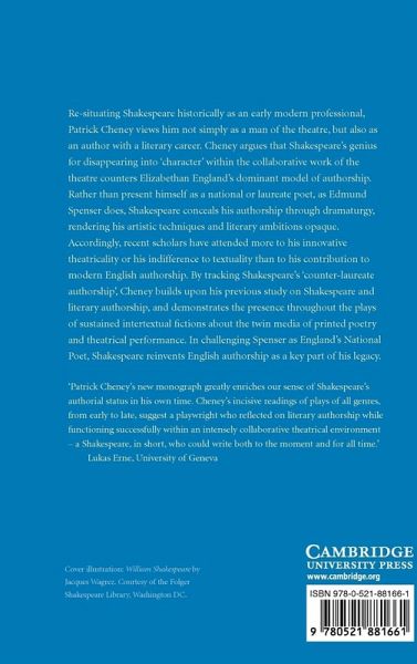 Re-situating Shakespeare as an early modern professional, in this book Patrick Cheney views him not simply as a man of the theatre, but also as an author with a literary career. Rather than present himself as a national or laureate poet, as Spenser does, Shakespeare conceals his authorship through dramaturgy, rendering his artistic techniques and literary ambitions opaque. Accordingly, recent scholars have attended more to his innovative theatricality or his indifference to textuality than to his contribution to modern English authorship. By tracking Shakespeare's 'counter-laureate authorship', Cheney builds upon his previous study on Shakespeare and literary authorship, and demonstrates the presence throughout the plays of sustained intertextual fictions about the twin media of printed poetry and theatrical performance. In challenging Spenser as England's National Poet, Shakespeare reinvents English authorship as a key part of his legacy.