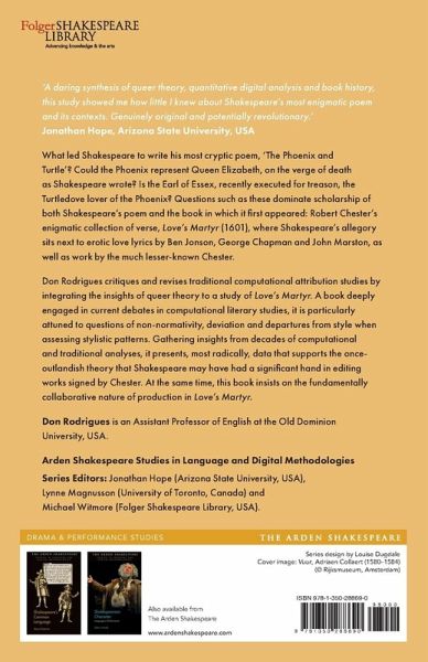 What led Shakespeare to write his most cryptic poem, 'The Phoenix and Turtle'? Could the Phoenix represent Queen Elizabeth, on the verge of death as Shakespeare wrote? Is the Earl of Essex, recently executed for treason, the Turtledove lover of the Phoenix? Questions such as these dominate scholarship of both Shakespeare's poem and the book in which it first appeared: Robert Chester's enigmatic collection of verse, Love's Martyr (1601), where Shakespeare's allegory sits next to erotic love lyrics by Ben Jonson, George Chapman and John Marston, as well as work by the much lesser-known Chester. Don Rodrigues critiques and revises traditional computational attribution studies by integrating the insights of queer theory to a study of Love's Martyr. A book deeply engaged in current debates in computational literary studies, it is particularly attuned to questions of non-normativity, deviation and departures from style when assessing stylistic patterns. Gathering insights from decades of computational and traditional analyses, it presents, most radically, data that supports the once-outlandish theory that Shakespeare may have had a significant hand in editing works signed by Chester. At the same time, this book insists on the fundamentally collaborative nature of production in Love's Martyr. Developing a compelling account of how collaborative textual production could work among early modern writers, Shakespeare's Queer Analytics is a much-needed methodological intervention in computational attribution studies. It articulates what Rodrigues describes as 'queer analytics': an approach to literary analysis that joins the non-normative close reading of queer theory to the distant attention of computational literary studies - highlighting patterns that traditional readings often overlook or ignore.