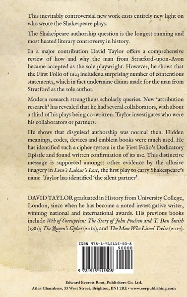 This inevitably controversial new work casts entirely new light on who wrote the Shakespeare plays. The Shakespeare authorship question is the longest running and most heated literary controversy in history. In a major new contribution David Taylor offers a comprehensive review of how and why the man from Stratford-upon-Avon became accepted as the sole playwright. However, he shows that the First Folio of 1623 includes a surprising number of contentious statements, which in fact undermine claims made for the man from Stratford as the sole author. Modern research strengthens such scholarly queries. New 'attribution research' has revealed that he had several collaborators, with about a third of his plays being co-written. Taylor investigates who were his collaborators or partners. He shows that disguised authorship was normal then. Hidden meanings, codes, devices and emblem books were much used. He has identified such a cipher system in the First Folio's Dedicatory Epistle and found written confirmation of its use. This distinctive message is supported amongst other evidence by the allusive imagery in Love's Labour's Lost, the first play to carry Shakespeare's name. Taylor has identified 'the silent partner.'