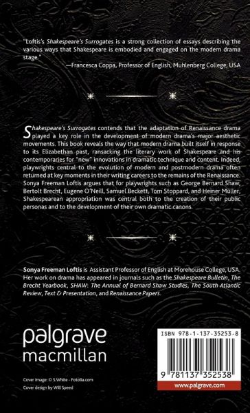 Shakespeare's Surrogates contends that adapting Renaissance drama played a key role in the development of modern drama's major aesthetic movements. Loftis posits that playwrights' reactions to Shakespeare and his contemporaries worked to create their public personas, inform their theoretical writings, and influence the development of new genres.