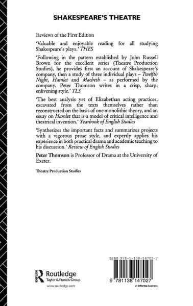 Concentrating on performance, Thomson reviews the commercial and artistic priorities of Shakespeare and the brilliant and hardheaded group of actors who formed his company during the heyday of the Globe Playhouse, from 1599 to 1608.