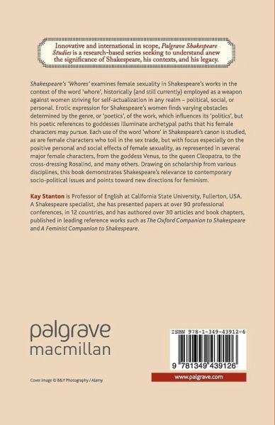 Shakespeare's 'Whores' studies each use of the word 'whore' in Shakespeare's canon, focusing especially on the positive personal and social effects of female sexuality, as represented in several major female characters, from the goddess Venus, to the queen Cleopatra, to the cross-dressing Rosalind, and many others.