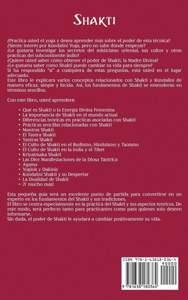 Si Quiere Despertar a su Shakti Interior, Siga Leyendo... ¿Practica usted el yoga y desea aprender más sobre el poder de esta técnica? ¿Siente interés por Kundalini Yoga, pero no sabe dónde empezar? ¿Le gustaría investigar los secretos del misticismo oriental, sus cultos y otras prácticas del subcontinente indio? ¿Quiere usted saber cómo obtener el poder de Shakti, la Madre Divina? ¿Le gustaría saber cómo Shakti puede cambiar su vida para siempre? Si ha respondido "sí" a cualquiera de estas preguntas, está usted en el lugar adecuado. Este libro le explicará varios conceptos relacionados con Shakti y Kundalini de manera eficaz, simple y lúcida. Así, los fundamentos de Shakti se entenderán en términos sencillos. Con este libro, usted aprenderá:Qué es Shakti o la Energía Divina Femenina La importancia de Shakti en el mundo actual Diferencias teóricas en prácticas asociadas con Shakti Prácticas sencillas relacionadas con Shakti Mantras Shakti El Tantra Shakti Yantras Shakti El Culto de Shakti en el Budismo, Hinduismo y Taoísmo El Culto de Shakti en la India y el Tíbet Kriyatmaka Shakti Las Diez Manifestaciones de la Diosa Tántrica Agama Yoginis y Dakinis Kundalini Shakti y su Despertar La Dualidad de Shakti ¡Y mucho más! Esta pequeña guía será un excelente punto de partida para convertirse en un experto en los fundamentos del Shakti y sus tradiciones. El libro se centra especialmente en la práctica del Shakti y sus aspectos teóricos. De este modo, será perfecto tanto para practicantes como para quienes solo deseen informarse. Sin duda, el poder de Shakti le ayudará a cambiar positivamente su vida. ¡Compre ya este libro para aprender más sobre Shakti!