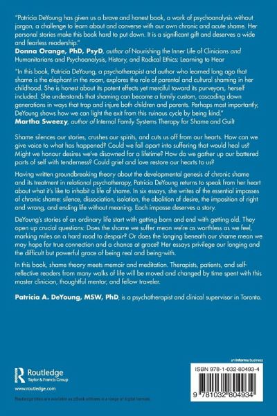 Having written groundbreaking theory about the developmental genesis of chronic shame and its treatment in relational psychotherapy, Patricia DeYoung returns to speak from her heart about what it's like to inhabit a life of shame. In six essays, she writes of the essential impasses of chronic shame: silence, dissociation, isolation, the abolition of desire, the imposition of right and wrong, and ending life without meaning. Each impasse deserves a story.