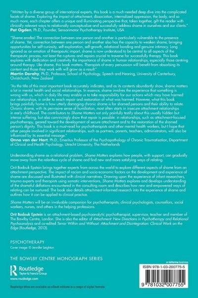 "As the title of this most important book accurately indicates, and as its contents abundantly show, shame matters a lot in mental health and social relationships. In essence, shame involves the experience that something is wrong with us, which in daily life may enable us to take responsibility for our actions which may have harmed our relationships, in order to reach repair and restoration of what was harmed. However, what this book brings painfully home is how utterly damaging chronic shame is for shamed persons and their ability to relate. Chronic shame, with its pervasive sense of humiliation, most often starts in insecure attachment relationships in early childhood. The contributors to Shame Matters not only painfully testify about this usually hidden but intense suffering, but also convincingly show that repair is possible: in relationships, such as attachment-focused psychotherapy, geared toward the development of secure attachment and to the restoration of the shamed person's dignity. This book is a must-read for psychotherapists and other mental health workers, but I hope that other people involved in significant relationships, such as partners, parents, teachers, administrators, will also be influenced by its essential message." Onno van der Hart, Ph.D., Emeritus Professor of the Psychopathology of Chronic Traumatisation, Department of Clinical and Health Psychology, Utrecht University, The Netherlands
