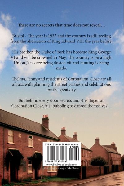 There are no secrets that time does not reveal... Bristol 1937 The year is 1937 and the country is still reeling from the abdication of King Edward the Eighth the year before. His brother, the Duke of York has become King George the Sixth and will be crowned in May. The country is on a high. Union Jacks are being dusted off and bunting is being made. Thelma, Jenny and residents of Coronation Close are all a buzz with planning the street parties and celebrations for the great day. But behind every door shameful secrets and sins linger on Coronation Close, just bubbling to expose themselves...