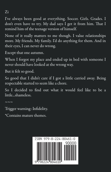 Zi I've always been good at everything. Soccer. Girls. Grades. I don't even have to try. My dad says I get it from him. That I remind him of the teenage version of himself. None of it really matters to me though. I value relationships more. My friends. My family. I'd do anything for them. And in their eyes, I can never do wrong. Except that one autumn. When I forgot my place and ended up in bed with someone I never should have looked at the wrong way. But it felt so good. So good that I didn't care if I got a little carried away. Being respectable started to seem like a chore. So I decided to find out what it would feel like to be a little...shameless. ~~~ Trigger warning: Infidelity. *Contains mature themes.
