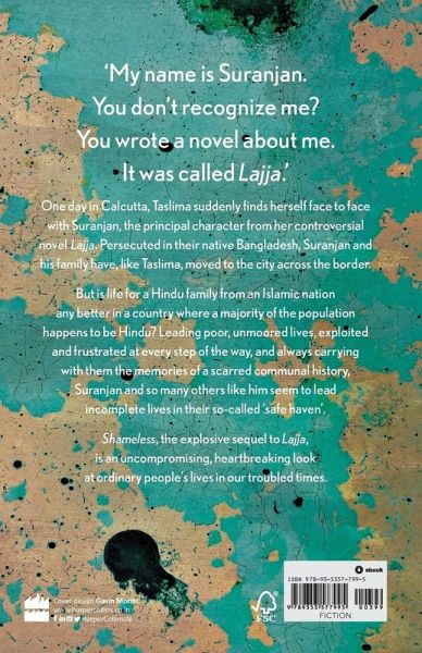 'My name is Suranjan. You don't recognize me? You wrote a novel about me. It was called Lajja.' One day in Calcutta, Taslima suddenly finds herself face to face with Suranjan, the principal character from her controversial novel Lajja. Persecuted in their native Bangladesh, Suranjan and his family have, like Taslima, moved to the city across the border.But is life for a Hindu family from an Islamic nation any better in a country where a majority of the population happens to be Hindu? Leading poor, unmoored lives, exploited and frustrated at every step of the way, and always carrying with them the memories of a scarred communal history, Suranjan and so many others like him seem to lead incomplete lives in their so-called 'safe haven'.Shameless, the explosive sequel to Lajja, is an uncompromising, heart-breaking look at ordinary people's lives in our troubled times.