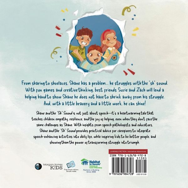 A heartwarming story, Shane and the "Sh" Sound follows the endearing friendship between Suzie and Zach as they help their friend Shane overcome his struggle with the elusive “sh” sound. Authored by a professional editor with insights from speech pathologists and educators, this engaging tale goes beyond speech therapy-it's a vibrant journey of empathy, resilience, and the power of friendship.Set in the town of Brookpark, Suzie’s kindness and Zach’s adventurous spirit take center stage when they encounter their friend Shane, disheartened by his difficulty in pronouncing words like his own name. Determined to help, the trio embarks on a playful quest, experimenting with tongue twisters, fun exercises like the “Shaking Shushes,” and the innovative “Silly Straw Sound Stretches.”Through persistence and creative techniques, Shane gradually masters the challenging sound, transforming his struggle into triumph. The story beautifully encapsulates the values of perseverance, friendship, and support, inspiring young readers to embrace differences, extend a helping hand, and celebrate the victories of others, while fostering empathy and understanding.Shane and the “Sh” Sound stands out for its engaging narrative, blending educational elements with a heartwarming storyline that resonates with children. It addresses the universal theme of overcoming challenges while imparting moral values, making it an appealing read for kids navigating their own obstacles. This book not only aids in language development but also fosters a sense of inclusivity and encourages children to champion each other’s successes, making it an invaluable addition to any young reader’s library.