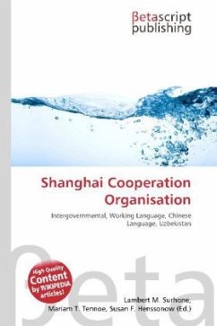 Please note that the content of this book primarily consists of articles available from Wikipedia or other free sources online. The Shanghai Cooperation Organisation (SCO) is an intergovernmental mutual-security organisation which was founded in 2001 in Shanghai by the leaders of China, Kazakhstan, Kyrgyzstan, Russia, Tajikistan, and Uzbekistan. Except for Uzbekistan, the other countries had been members of the Shanghai Five, founded in 1996; after the inclusion of Uzbekistan in 2001, the members renamed the organisation. The official working languages of the Shanghai Cooperation Organisation are Chinese and Russian.