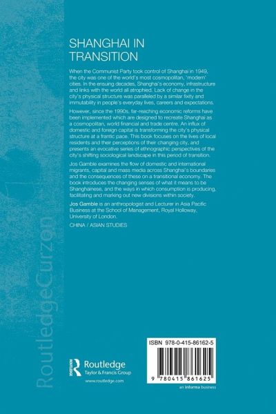 In the decades following the introduction of Communist Party rule in Shanghai in 1949, the city's economy, infrastructure and links with the world all atrophied. However, the past decade has seen far-reaching economic reforms implemented to recreate Shanghai as a cosmopolitan, world financial and trade centre. This book focuses on the lives of local residents and their perceptions of their changing city, and presents an evocative series of ethnographic perspectives of the city's shifting sociological landscape in this period of transition.