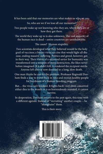 It has been said that our memories are what makes us who we are.So, who are we if we lose all our memories? Two people wake up not knowing who they are, where they are or how they got there.The world they wake up to is also unknown. The vast majority of the human race is dead - entire countries are uninhabitable.The cause? Human stupidity.Two scientists developed what they believed would be the holy grail of vaccines; a binary virus/vaccine that would fight all disease, ending massive suffering. Politics and greed, however, got in their way. Their vision of a universal savior for humanity was transformed into a weapon of mass destruction, the likes never before imagined. If it didn't kill, it rendered the recipient sterile. Anyone left alive is now doomed to a long, slow death.One man thinks he can fix the problem. Professor Reginald Denham finds a way to travel back in time and recruit healthy people for his dream of a human breeding program.But... the virus isn't finished. It fights back! Any child conceived either dies in the womb or is so horrendously mutated, it cannot survive. In desperation, Denham returns to the past again, this time with a different agenda. Instead of "recruiting" another couple... he "shanghaies" them.This is their story.