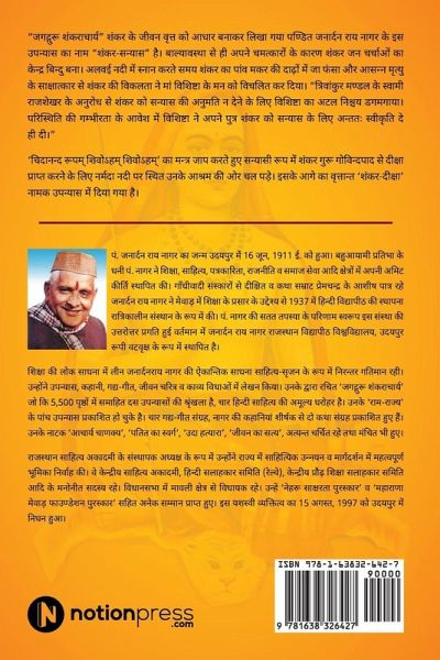 The title of this novel based on the life narrative of Jagatguru Shankaracarya Shanker is Shanker - Sanyas. Shanker had become a center of popular discussions due the miracles he performed even while he was just a child. While bathing in the river Alvai, the leg of Shanker was caught by a crocodile. Looking at the anxiety of Shanker at approaching death as his limb was in the jaws of the crocodile, his mother Vishishtha felt perturbed. "Vishishta's resolve of not giving permission of Sanyas (Asceticism) to Shanker wavered at the request of Chief of Trivankur Mandal Rajshekhar. Looking at the gravity of the situation finally Vishishtha gave her consent for the Sanyas ( Asceticism) of her son." Chanting the mantra "Chidanand rupam Shivo-aham, Shivo-aham" Shanker in the attire of an ascetic set off towards the Ashram of Govindpad at the bank of river Narmada." The description of what followed has been given in the novel Shanker-Diksha. That this novel is influential and interesting for the readers is beyond doubt. This is a new experiment in the field of fiction writing. It is not just literature but encompasses in itself art in its totality. It is a manifestation of the childhood and the surrounding world of Shanker in addition to being a novel. The author has tried in all earnestness to make the subject and statements of the novel the best and hence the novel gets the sublimity of an epic. It is not just the voice of the soul of the author but is expression of the collective consciousness of the people of his time. The objective and ideas of Shanker are the soul of the novel. The author has modified, changed, amended and transformed the contemporary reality through his imagination.