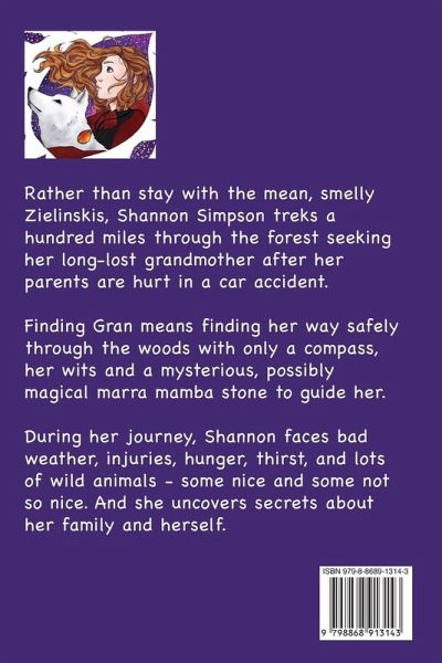 Shannon Simpson has a kind soul, sometimes questionable judgment, and courage to spare. And she has no idea she can communicate with animals when she sets off on a 100-mile trek through the forest seeking her long-lost grandmother. Finding Gran means winding her way safely through the woods with only a compass, her wits and a mysterious, possibly magical, marra mamba stone to guide her. During her journey, Shannon faces bad weather, injuries, hunger, thirst, and wild animals-some nice and some not so nice. And along the way, she uncovers secrets about her family and herself.