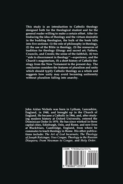 This study is an introduction to Catholic theology designed both for the theological student and for the general reader willing to make a certain effort. After introducing the idea of theology adn the virtues desirable in the budding theologian, the bulk of the book falls intro the five sections: (1) the tole of philosophy in theology; (2) the use of the Bible in theology; (3) the resources of tradition, liturgy and sacred art; Fathers, Councils and Creeds; the sense of the faithful; (4) two 'aids to discernment in short history of Catholic theology from the New Testament to the present day. The conclusion considers the features of pluralism and unity which should typify Catholic theology as a whole and suggests how unity may avoid becoming uniformity without pluralism becoming anarchy.