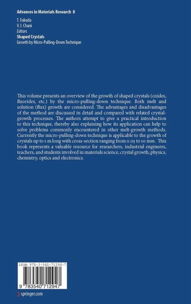This volume presents an overview of the growth of shaped crystals (oxides, fluorides, etc.) by the micro-pulling-down technique. Both melt and solution (flux) growth are considered. The advantages and disadvantages of the method are discussed in detail and compared with related crystal-growth processes. The authors attempt to give a practical introduction to this technique, thereby also explaining how its application can help to solve problems commonly encountered in other melt-growth methods. Currently the micro-pulling-down technique is applicable to the growth of crystals up to 1 m long with cross-section ranging from 0.05 to 10 mm. This book represents a valuable resource for researchers, industrial engineers, teachers, and students involved in materials science, crystal growth, physics, chemistry, optics and electronics.