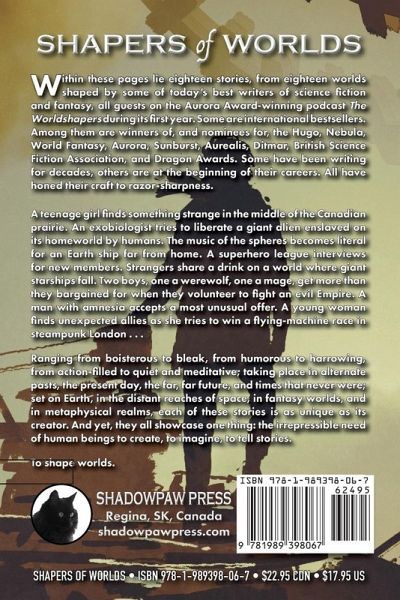 The first in a series of blockbuster anthologies featuring authors featured on the Aurora Award-winning podcast The Worldshapers Within these pages lie eighteen stories, from eighteen worlds shaped by some of today's best writers of science fiction and fantasy, all guests on the Aurora Award-winning podcast The Worldshapers during its first year. There are never-before-seen stories by Tanya Huff, Seanan McGuire, David Weber, L.E. Modesitt, Jr., John C. Wright, D.J. Butler, Christopher Ruocchio, Shelley Adina, and Edward Willett, plus outstanding fiction by John Scalzi, Joe Haldeman, David Brin, Julie E. Czerneda, Fonda Lee, Gareth L. Powell, Dr. Charles E. Gannon, Derek Künsken, and Thoraiya Dyer. Among these authors are international bestsellers , and winners of and nominees for the Hugo, Nebula, World Fantasy, Aurora, Sunburst, Aurealis, Ditmar, British Science Fiction Association, and Dragon Awards. Some have been writing for decades, others are at the beginning of their careers. All have honed their craft to razor-sharpness. A teenage girl finds something strange in the middle of the Canadian prairie. An exobiologist tries to liberate a giant alien enslaved on its homeworld by humans. The music of the spheres becomes literal for an Earth ship far from home. A superhero league interviews for new members. Strangers share a drink on a world where giant starships fall. Two boys, one a werewolf, one a mage, get more than they bargained for when they volunteer to fight an evil Empire. A man with amnesia accepts a most unusual offer. A young woman finds unexpected allies as she tries to win a flying-machine race in steampunk London . . . Ranging from boisterous to bleak, from humorous to harrowing, from action-filled to quiet and meditative; taking place in alternate pasts, the present day, the far, far future, and times that never were; set on Earth, in the distant reaches of space, in fantasy worlds, and in metaphysical realms, each of these stories is as unique as its creator. And yet, they all showcase one thing: the irrepressible need of human beings to create, to imagine, to tell stories: To shape worlds.