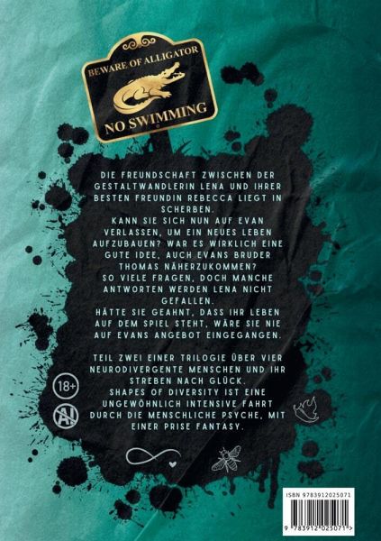 Open Dyslexic Version für Menschen mit Legasthenie, mit 26 handgezeichneten Illustrationen in schwarzweiss.- Nimm was du kriegen kannst. Wer weiß, wann du wieder die Möglichkeit dazu bekommst? Du wirst schneller alt, als dir lieb ist. -Die Freundschaft zwischen der Gestaltwandlerin Lena und ihrer besten Freundin Rebecca liegt in Scherben.Kann sie sich nun auf Evan verlassen, um ein neues Lenen aufzubauen? War es wirklich eine gute Idee, auch Evans Bruder Thomas näherzukommen?So viele Fragen, doch manche Antworten werden Lena nicht gefallen.Hätte sie geahnt, dass ihr Lenen auf dem Spiel steht, wäre sie nie auf Evans Angebot eingegangen.Teil zwei einer Trilogie über vier neurodivegente Menschen und ihr Streben nach Glück.Shapes of Diversity ist eine ungewöhnlich intensive Fahrt durch die menschliche Psyche, mit einer Prise Fantasy.