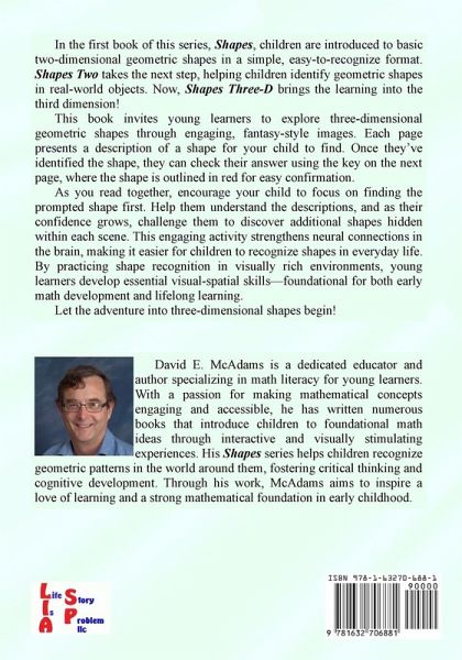 Shapes Three-D builds upon the foundation established in Shapes, introducing young readers to three dimensional shapes such as cubes and spheres. This book challenges readers to identify geometric forms contained within fantasy inspired images. By engaging in this search, children strengthen their visual recognition, pattern detection, and cognitive development in a fun and engaging way. Each page presents a specific shape for children to find, reinforcing spatial awareness and problem-solving skills. After making their discoveries, they can check their answers using a key at the back of the…mehr