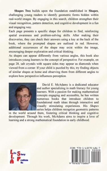 Shapes Two builds upon the foundation established in Shapes, challenging young readers to identify geometric forms hidden within real-world images. By engaging in this search, children strengthen their visual recognition, pattern detection, and cognitive development in a fun and engaging way. Each page presents a specific shape for children to find, reinforcing spatial awareness and problem-solving skills. After making their discoveries, they can check their answers using a key at the back of the book, where the prompted shapes are outlined in red. However, additional occurrences of the shape may exist within the image, encouraging deeper exploration and critical thinking. As shapes can appear differently from various angles, this book also introduces young learners to the concept of perspective. For example, on page 28, salt crystals with square sides may appear as diamonds when viewed from a corner. If your child is puzzled by this, try finding objects of similar shapes at home and observing them from different angles to explore how perspective influences perception. To extend the learning experience, parents and educators can encourage children to identify additional shapes beyond those prompted, further enhancing their ability to recognize geometric forms in everyday environments. Shapes Two is part of a growing series, with future books introducing progressively more complex shape recognition challenges. These books help children refine their observational skills and develop a lifelong appreciation for the geometry that surrounds them.