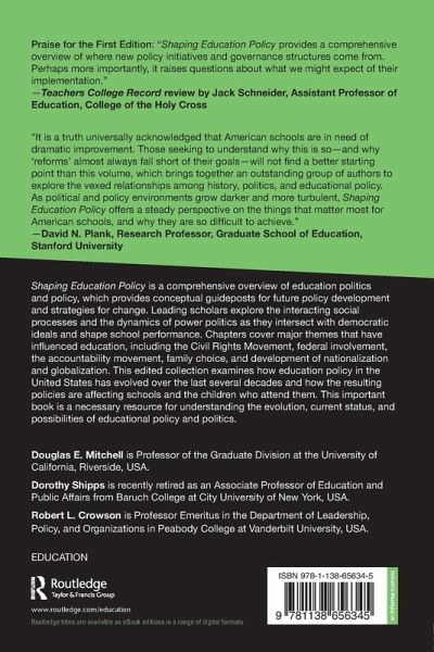 Shaping Education Policy is a comprehensive overview of education politics and policy, which provides conceptual guideposts for future policy development and strategies for change.