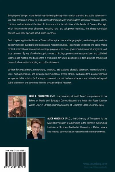 Each chapter applies the Model of Country Concept across a wide geographic, methodological, and disciplinary range of qualitative and quantitative research studies. They include traditional and social media content, international educational exchange programs, tourism, government-sponsored programs, and entertainment. By way of definitions, prior research findings, professional best practices, and published theories and models, the book offers a framework for future positioning of both practice around and research about nation branding and public diplomacy.
