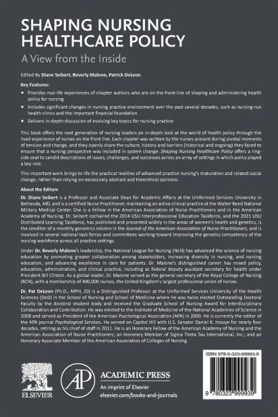 The next generation of nursing leadership needs in-depth exposure to the real world of health policy, its culture and history, including understanding what historical barriers and professional opposition exists to nursing functioning of its training and expertise. Shaping Nursing Healthcare Policy: A View from the Inside directly addresses the recommendations of the Institute of Medicine landmark reports on the Future of Nursing.