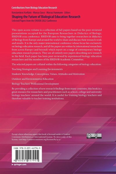 This open access volume is a collection of full papers based on the peer-reviewed presentations accepted for the European Researchers in Didactics of Biology, ERIDOB 2022 conference. ERIDOB aims to bring together researchers in didactics of Biology from Europe and around the world to share and discuss their research work and results. It is the only major international conference whose focus lies exclusively on biology education research, and all the papers are written by international researchers from across Europe (and beyond) which report on a range of contemporary biology education research projects. They are all entirely new papers describing new research in the field. Each paper has been peer-reviewed by experienced biology education researchers and the members of the ERIDOB Academic Committee.