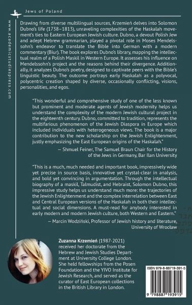 Krzemień's book delves into the life of Solomon Dubno (1738-1813), a devout Polish Jew who was pivotal to Moses Mendelssohn's project of translating the Bible into German. It explores Dubno's role, his library's influence, and his poetic endeavors to showcase the beauty of Hebrew. The work offers a nuanced image of the early Haskalah movement.