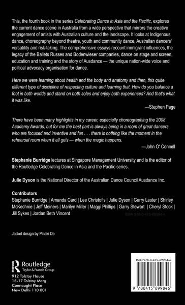 Stephanie Burridge lectures at Singapore Management University, Singapore and is a dance critic, author and Editor of the Routledge series 'Celebrating Dance in Asia and the Pacific'. Juile Dyson is National Director at Australian Dance Council -- Ausdance.