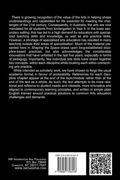 There is growing recognition of the value of the Arts in helping shape understandings and capabilities for life essential for meeting the challenges of the 21st century. Consequently, in Australia, the Arts are now mandated for all students from kindergarten to year 9. In the lower secondary setting, this has led to a high demand for educators with specialized teaching skills and knowledge, as well as Arts practice skills. However, a shortage of specialized Arts educators has resulted in many teaching outside their areas of specialization. Much of the material presented here in Shaping the Space draws upon long-established discipline-based practices but also acknowledges the considerable innovations that have unfolded in the last five years, especially in terms of pedagogy. Importantly, few individual Arts texts have drawn together key concepts within each discipline while locating each within overarching Arts practice.The text offers educators broad insights into the place of each discipline in life along with its key educational philosophies before burrowing down into practice-lead approaches to planning, teaching and assessing. The authors have deliberately chosen this approach rather than discrete discipline sections to allow educators to gain insights into what makes each Arts discipline unique but also part of an Arts 'whole'. Accordingly, there are five chapters on each discipline, interwoven as follows:· The place of each discipline in contemporary life· Key educational philosophies underpinning each discipline· Planning to teach the discipline· Teaching the discipline· Assessment within the discipline Educators can engage specifically with their discipline by skipping to each discipline chapter or read more generally across the various disciplines. By arranging the material this way each chapter has content that is specific to the individual discipline while offering broader engagement with similar principles across Arts practice as a whole. Whilst intended as scholarly work, the authors have chosen to forgo the usual academic format in favor of accessibility. References for each discipline chapter appear at the end of the topic / module rather than at the end of the text as a whole. As such, the text attempts to be more relational and reflexive to student needs and interests, more innovative and aligned to contemporary learning principles, and written in simple plain English framed around practical solutions to common Arts education challenges and demands.