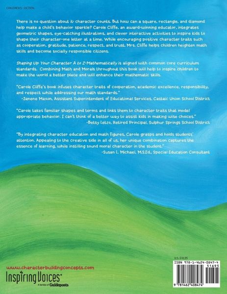 There is no question about it: character counts. But how can a square, rectangle, and diamond help make a child's behavior sparkle? Carole Cliffe, an award-winning educator, integrates geometric shapes, eye-catching illustrations, and clever interactive activities to inspire kids to shape their character-one letter at a time. While encouraging positive character traits such as cooperation, gratitude, patience, respect, and trust, Mrs. Cliffe helps children heighten math skills and become socially responsible citizens. Shaping Up Your Character A to Z-Mathematically is aligned with common core curriculum standards. Combining Math and Morals throughout this book will help to inspire children to make the world a better place and will enhance their mathematic skills. "Carole Cliffe's book infuses character traits of cooperation, academic excellence, responsibility, and respect while addressing our math standards." -Janene Maxon, Assistant Superintendent of Educational Services, Castaic Union School District "Carole takes familiar shapes and terms and links them to character traits that model appropriate behavior. I can't think of a better way to assist kids in making wise choices." -Betsy Letzo, Retired Principal, Sulphur Springs School District "By integrating character education and math figures, Carole grasps and holds students' attention. Appealing to the creative side in all of us, her unique combination captures the essence of learning, while instilling sound moral character in the student." -Susan L. Michael, M.S.Ed., Special Education Consultant