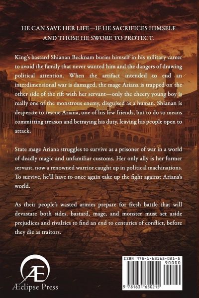He can save her life—if he sacrifices himself and those he swore to protect. King’s bastard Shianan Becknam buries himself in his military career to avoid the family that never wanted him and the dangers of drawing political attention. When the artifact intended to end an interdimensional war is damaged, the mage Ariana is trapped on the other side of the rift with her servant—only the cheery young boy is really one of the monstrous enemy, disguised as a human. Shianan is desperate to rescue Ariana, one of his few friends, but to do so requires committing treason and betraying his duty, leaving his people open to attack. State mage Ariana struggles to survive as a prisoner of war in a world of deadly magic and unfamiliar customs. Her only ally is her former servant, now a renowned warrior caught up in political machinations. To survive, he’ll have to once again take up the fight against Ariana’s world. As their people’s wasted armies prepare for fresh battle that will devastate both sides, bastard, mage, and monster must set aside prejudices and rivalries to find an end to centuries of conflict, before they die as traitors. Book 1 in a new epic fantasy series. Other books by the author: The Songweaver's Vow (Realm Award winner, SPFBO semi-finalist) Kitsune-Tsuki (Luminis Prize winner) Kitsune-Mochi Bait Con Job many more This new epic fantasy series is recommended for fans of Patrick Rothfuss, Brandon Sanderson, and George R.R. Martin.