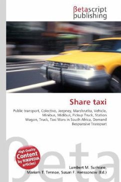 Please note that the content of this book primarily consists of articles available from Wikipedia or other free sources online.A share taxi is a mode of transport that falls between private transport and conventional bus transport, often with a fixed or semi-fixed route, but with the added convenience of stopping anywhere to pick up or drop off passengers and not having fixed time schedules. The vehicles used range from standard 4 seater cars up to minibuses. Share taxis are the main system of public transport in many countries (especially developing countries) and are known by many different names around the world (see table). They often are privately owned and have an anarchic operating style, lacking central control or organisation.